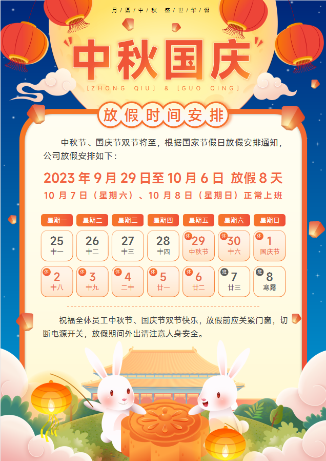 公司2023 年中秋節(jié)、國慶節(jié)放假通知